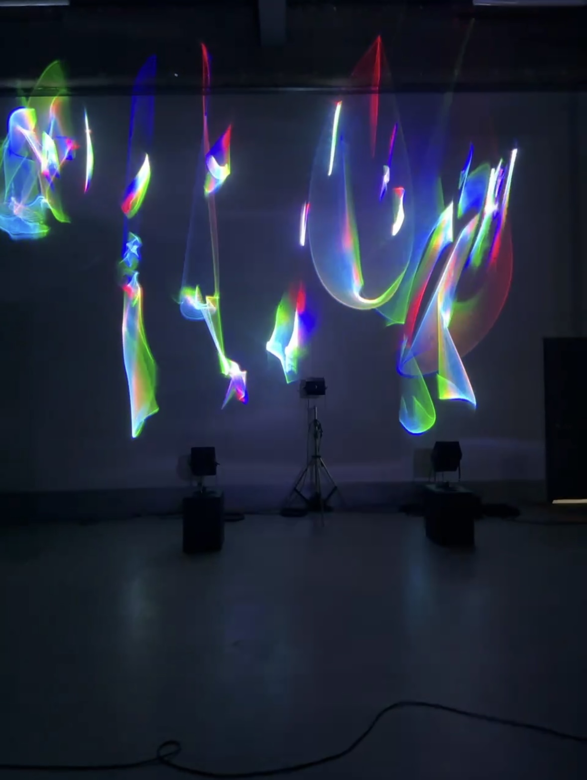 いままではレーザーを映像と同期させる演出を行ってきましたが、今回初めてレジンを塗ったアクリル板にレーザーを反射させる演出を行いました。