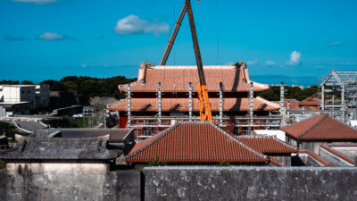 まだ復旧工事途中の姿でしたが、赤瓦の大きな屋根の姿を拝むことができました。