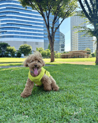 こんな可愛いワンちゃんと毎朝お散歩行けるのは朝の癒しですね〜!